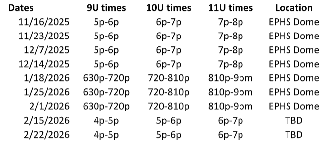 This is our main Clinics and Camps page that will outline all of our offerings. We strive to provide great options for our EPBA players to help improve their skills, while having fun!