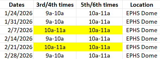 - 3/15/2026 - 2:45pm-4:00pm - EPHS Dome