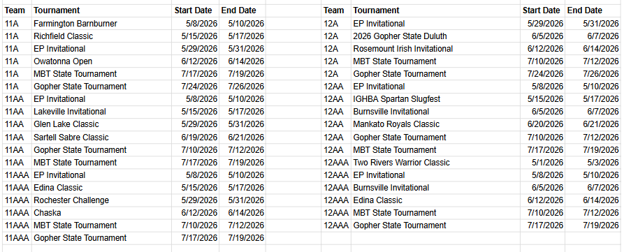 - Tournaments are more competitive as they are the opportunity to qualify for the two State tournaments - Metro Baseball Tournaments and the Gopher State Tournament of Champions. Each tournament has a slightly different situation, but in general, teams earn bids to one or both State tournaments when they win first or second place in a tournament. Since teams are playing competitively, expect to see coaches be more strategic about how they use players. Playing time may not be equal and players are more likely to play in the positions where they’re most likely to help the team be successful.